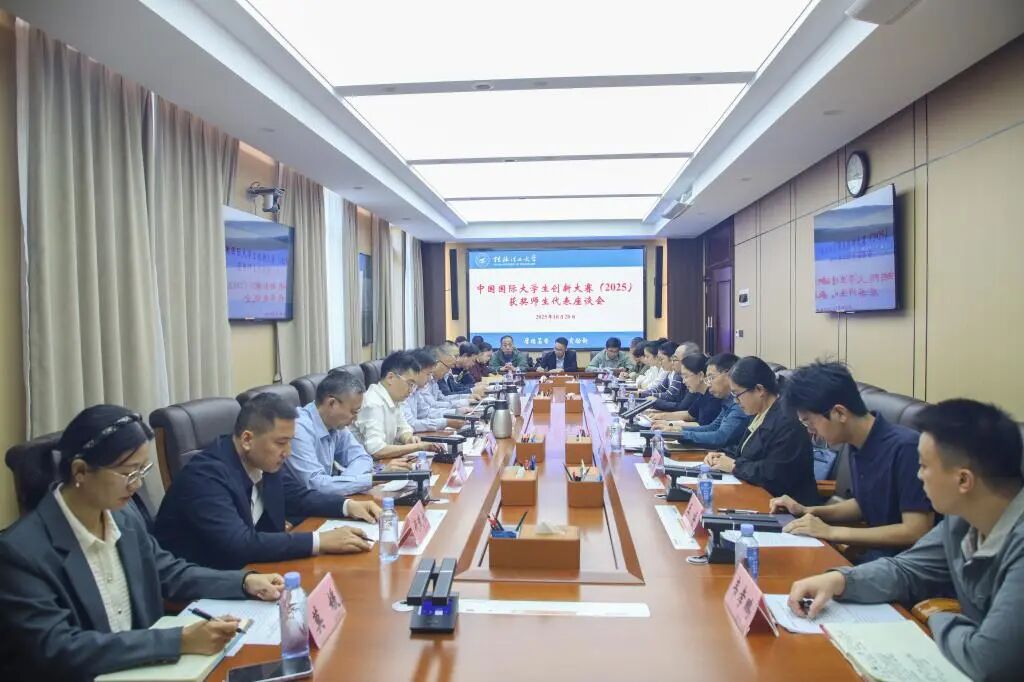 10月20日上午,学校在屏风校区第一会议室召开中国国际大学生创新大赛(2025)获奖师生代表座谈会。校党委书记农毅,党委副书记、校长王敦球出席会议并讲话。党委常委、副校长王磊主持会议。相关职能部门、学院负责人及获奖师生代表参加座谈。