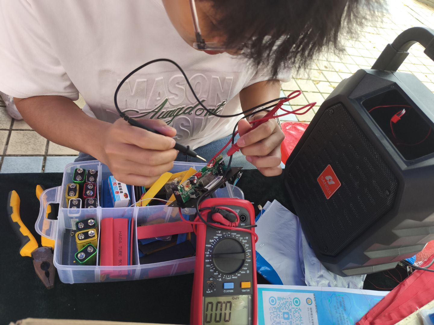 活动现场,20余名协会成员分工协作,设立咨询登记、故障检测、维修操作、成果交付四大功能区,构建起高效有序的服务链条。面对师生送检的台灯、风扇、电脑、音响等多种电器,技术人员运用万用表、示波器等专业设备,对电路板、电源模块等核心部件进行系统检测,精准定位故障原因。针对复杂问题,团队通过集体研讨制定维修方案,确保修复质量。