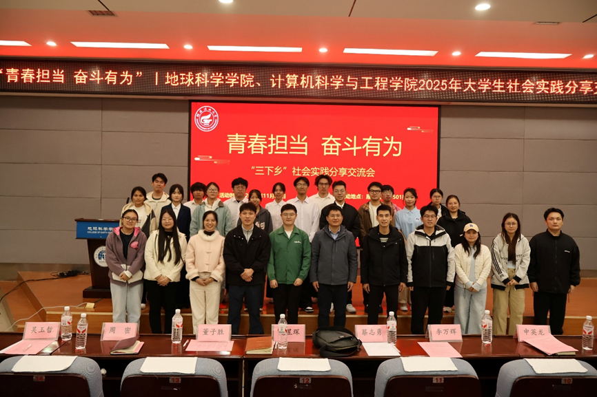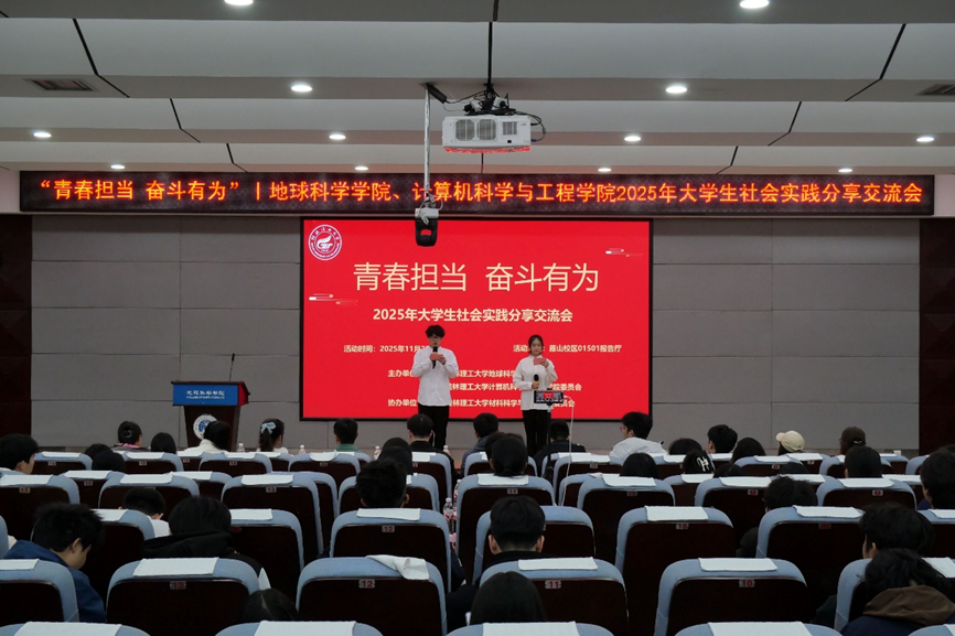 11月25日,地球科学学院与计算机科学与工程学院/人工智能学院在01501报告厅联合举办2025年大学生社会实践分享交流会。来自主办学院及材料科学与工程学院的教师代表及学生共计200余人参与活动。