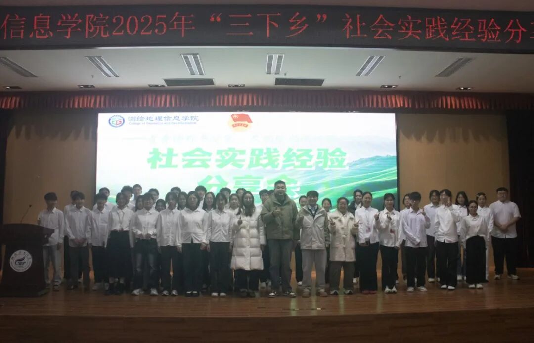 为了更好地向同学们介绍测绘学院暑期“三下乡”社会实践活动,让同学们更好地认识科技创新和科技下乡为社会带来的帮助,我院于2025年12月24日在雁山校区图书馆报告厅举办2025年暑期“三下乡”社会实践经验分享会。测绘学院团委副书记(兼)张铮海、24级辅导员黄晨老师、兼职辅导员韦巍老师出席本次分享会。