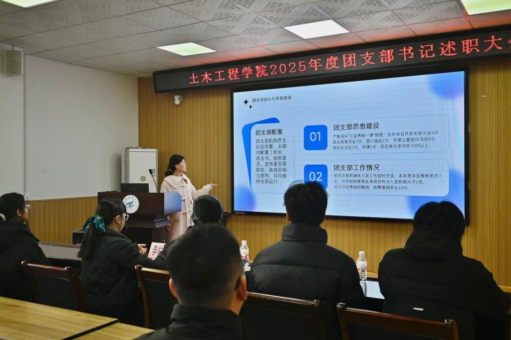 为深入贯彻从严治团要求,全面总结2025年度基层团组织建设成效,1月5日,土木工程学院2025年度团支部书记述职大会在学院4203教室顺利召开,各年级团支部书记到场参会,会议由学院团委书记李林军主持。