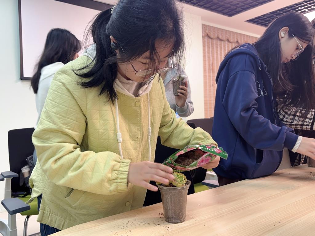 为拉近学子与自然的联结,舒缓学业生活压力,营造积极健康的校园心理氛围,3月12日植树节当天中午,学院团委、学生会携手心语社,在嘉园“一站式”学生社区共同开展“‘植’此青绿,‘愈’见春天”春日绿植疗愈主题活动。同学们亲手栽种绿意,在春日中收获心灵治愈与温暖力量。