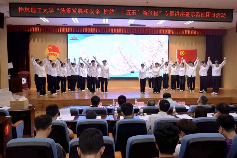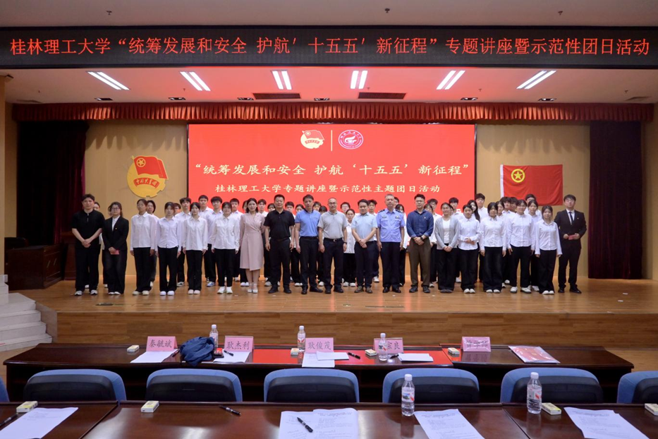 4月14日下午,由学校保卫处、校团委联合主办,地球科学学院团委承办的“统筹发展和安全护航 ‘十五五’新征程”专题讲座暨示范性主题团日活动,在雁山校区图书馆报告厅顺利举办。地球科学学院党委书记耿俊茂、学校保卫处副处长耿杰利、校团委副书记慕宗良,桂林市公安局国内安全保卫支队副支队长秦毓斌、驻校警务联络官曾学师出席活动,全校专兼职团干部、辅导员及团员青年代表共200余人参加。
